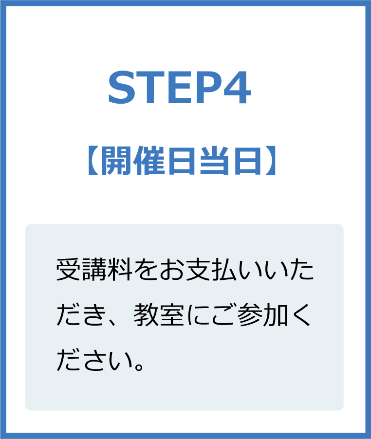 - 受講料をお支払いいただき、教室にご参加ください。