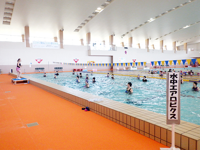 ウォーキングを中心に、水を活用し、効果のある運動方法を指導する「水中ウォーキング」と、水の抵抗を利用することで、効率よく運動効果が得られる、水中で音楽に合わせてエアロビクスを行う「水中エアロビクス」を組み合わせた教室です。