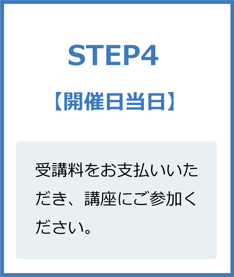 - 受講料をお支払いいただき、講座にご参加ください。